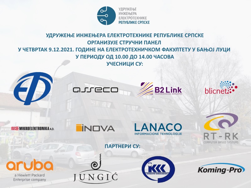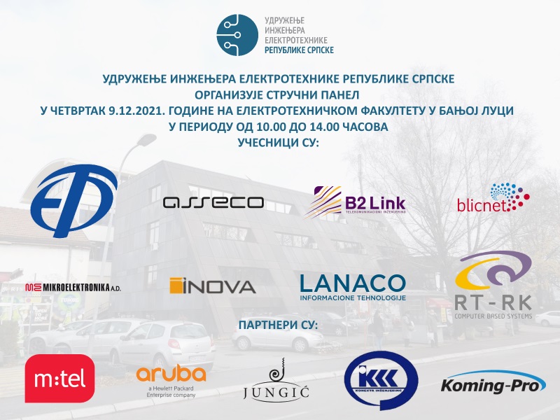 Udruženje inženjera elektrotehnike Republike Srpske organizuje stručni panel u četvrtak, 09.12.2021. godine na Elektrotehničkom fakultetu u Banjoj Luci u periodu od 10.00 do 14.00 časova.