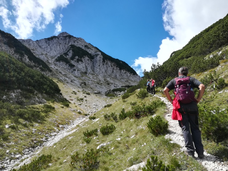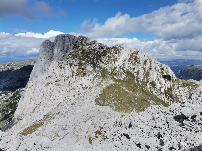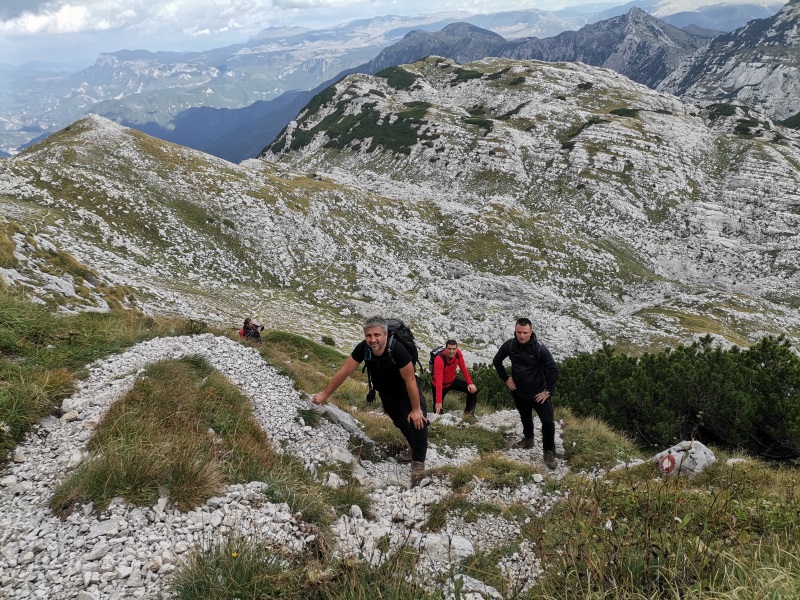 Od Jezerca smo krenuli ka sedlu i samom vrhu, gde nam je trebalo još oko dva sata. Uspon je djelimično osiguran sajlama, koje služe da sigurnije prođemo kroz usjeke. Ukupno smo prepješačili oko 21km i negde blizu 1700m uspona.